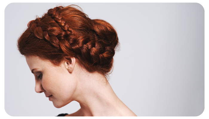 Um visual mais elaborado, mas super elegante. A trança começa no topo ou lateral da cabeça e termina num coque baixo. É ideal para quem quer um penteado que dure o dia todo e mantenha o cabelo no lugar com estilo. Funciona lindamente com vestidos de costas abertas ou detalhes delicados no decote.