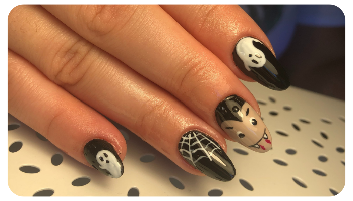 As opções de manicure para o Halloween são muitas. Podes escolher tons clássicos como preto, laranja, vermelho ou azul petróleo, ou apostar em glitter, purpurina e manicures temáticas com teias de aranha, abóboras e outros detalhes assustadoramente bonitos. Quanto ao formato, as unhas ovais continuam a ser tendência.